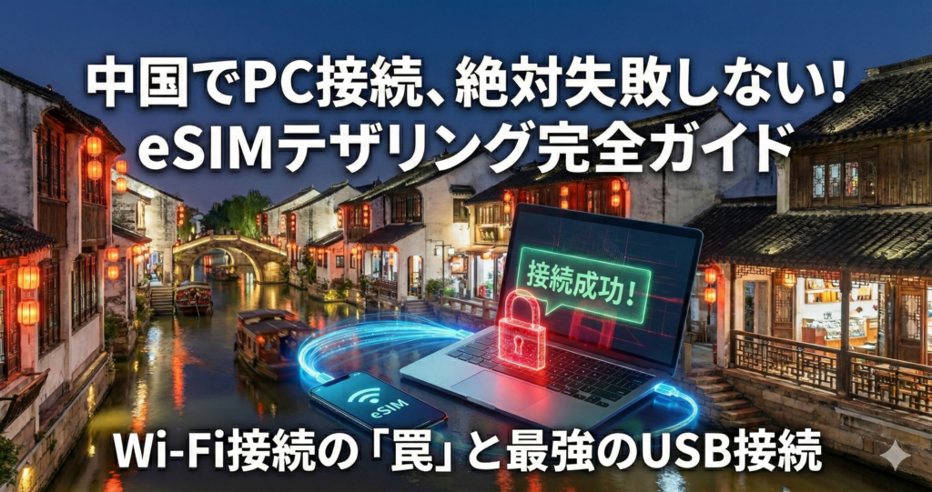 【中国】PCを確実にネット接続する方法|eSIMテザリング完全ガイド(Wi-Fi/USB/Bluetooth)